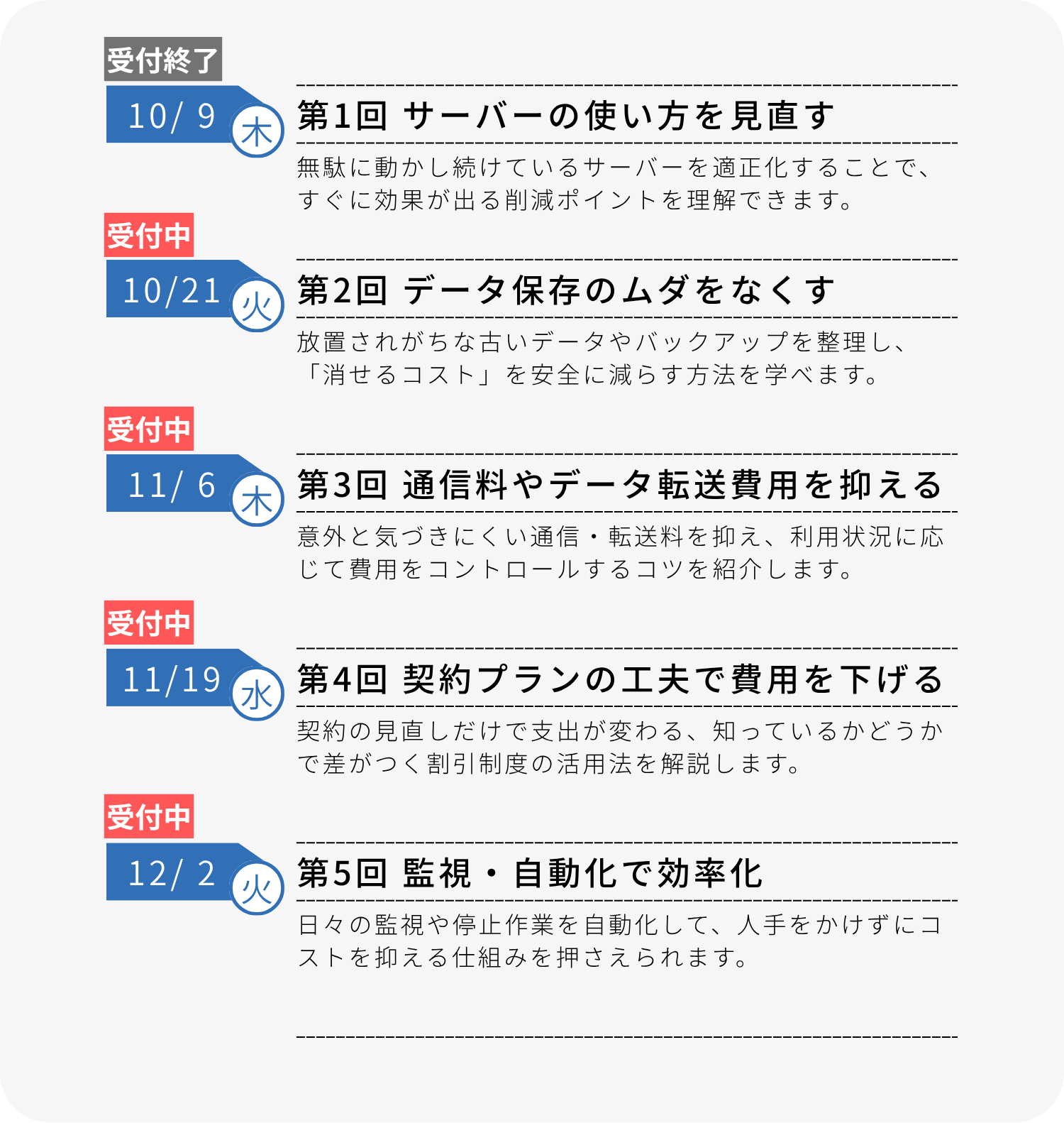 それぞれ独立した内容のため、気になる回だけの参加も歓迎です。