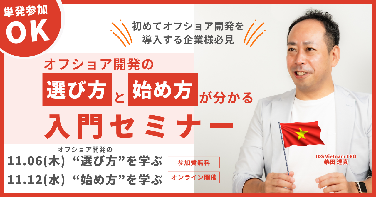 【11月無料セミナー】『全2回:オフショア開発の企業選びと始め方が分かる入門セミナー』を11月6日(木)、11月12日(水)に開催